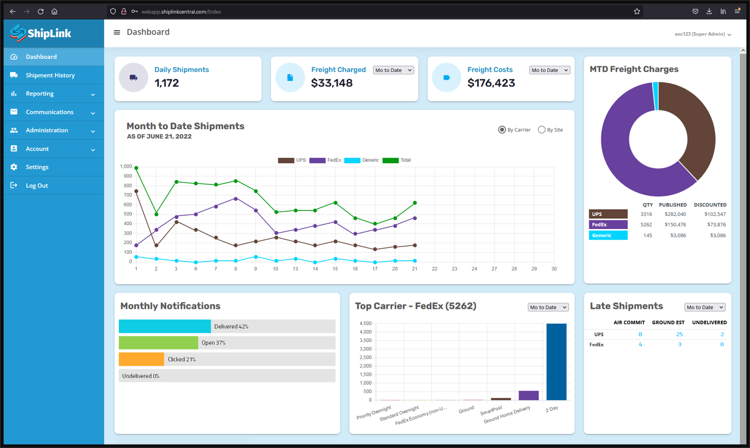 The ShipLink Administration System provides complete control over integration, carrier configuration and shipment processing.